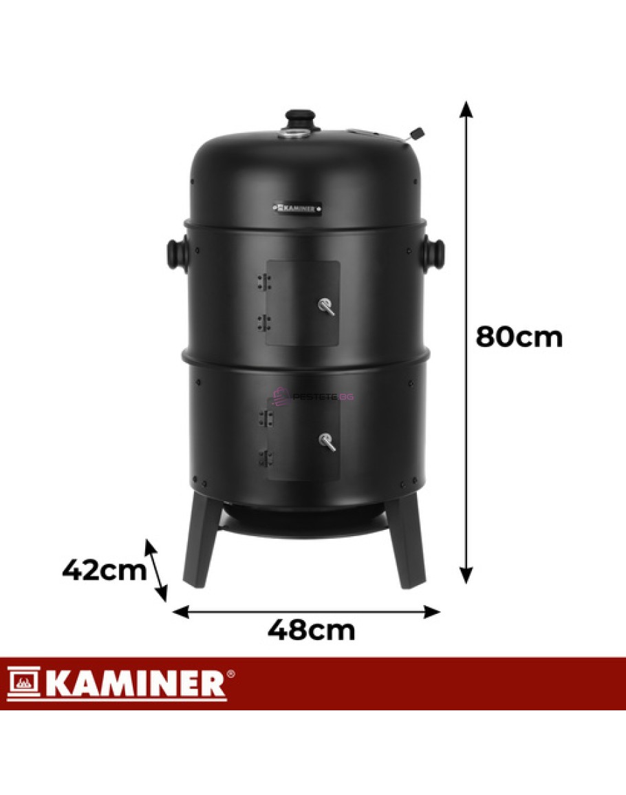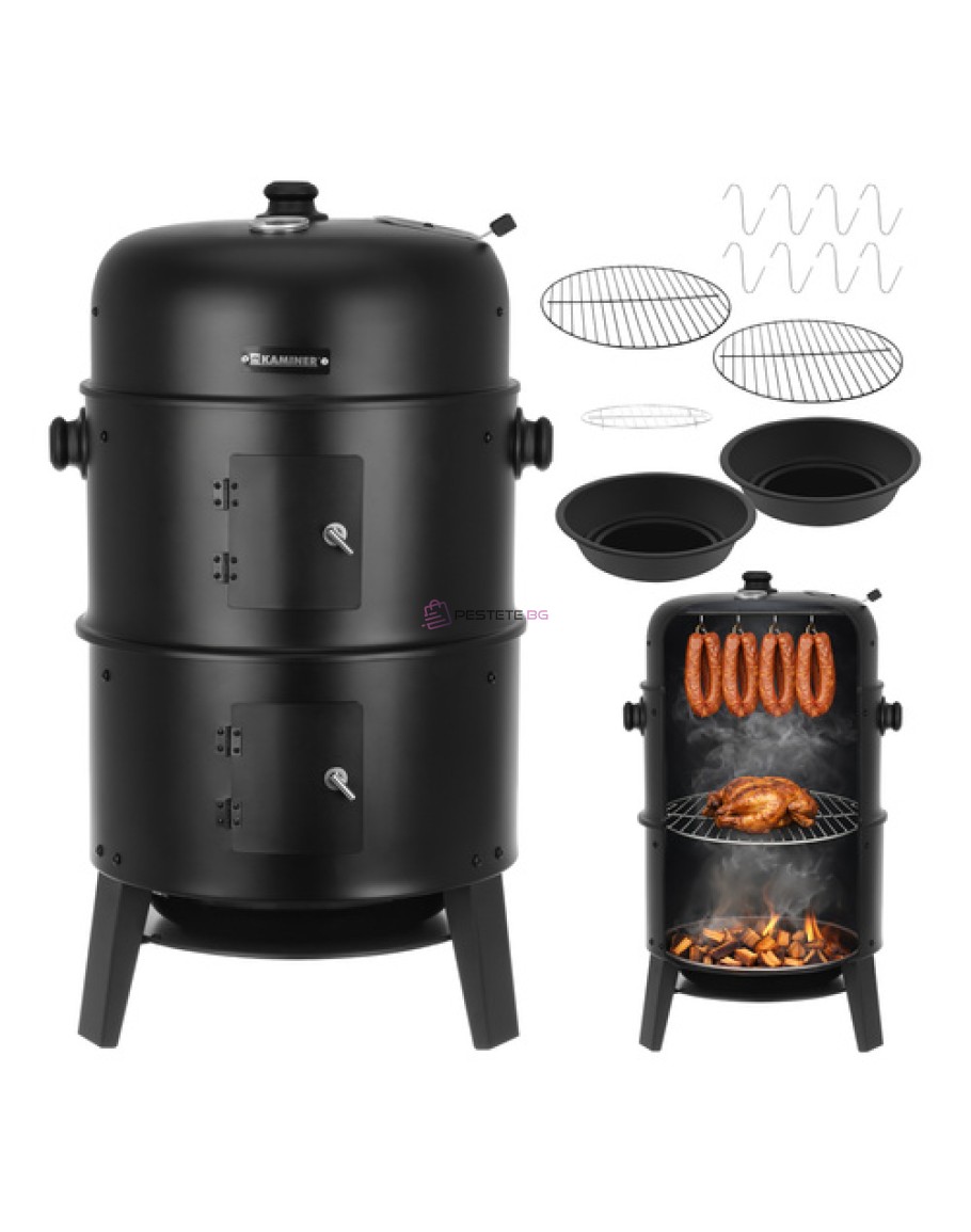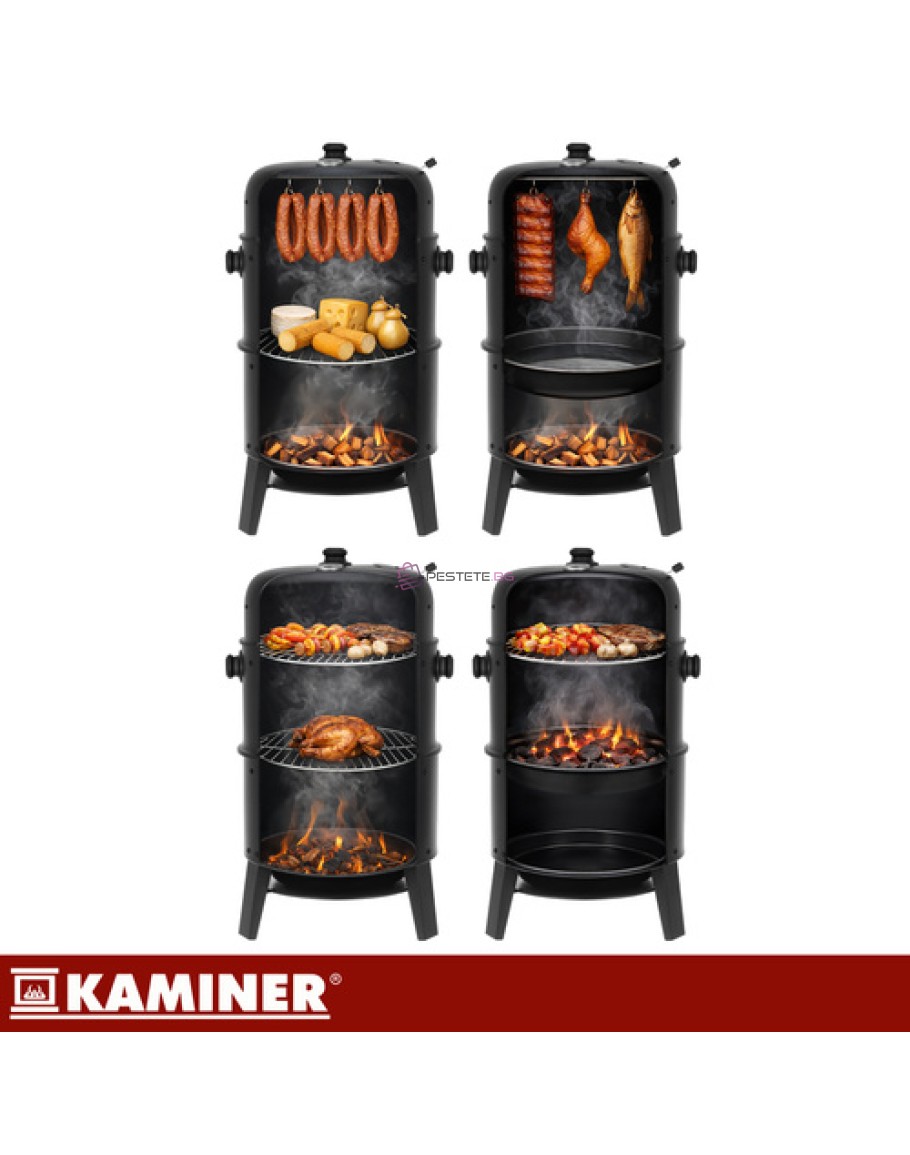 Омръзна ли ви от скара, на която е трудно да се поддържа температура, а месото понякога излиза сурово, понякога изгоряло? Kaminer 3-в-1 съчетава печене на скара, палене на лагерен огън и опушване в едно устройство, което ви позволява да приготвяте сочни ястия и ароматни пушени меса без никакви затруднения. Вграденият термометър и контролът на въздушния поток ви дават контрол още от първата светлина.