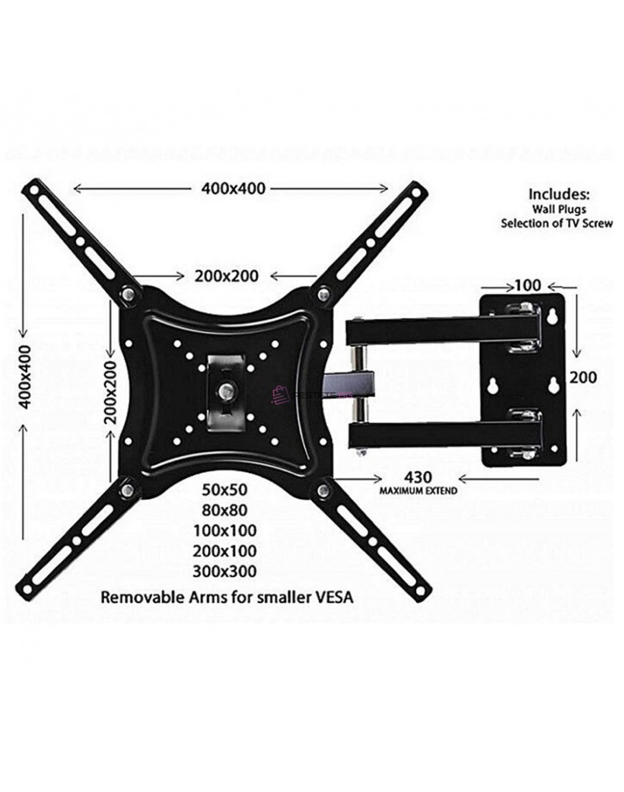 Освен това, стойката за телевизор е много удобна и функционална. Тя позволява монтаж на телевизори от 14 до 55 инча със стандартен монтаж 50x50, 75x75, 100x100, 100x200 или 200х200 мм. Разстоянието между телевизора и стената може да бъде регулирано в рамките на 80-460 мм, за да се адаптира към размерите на помещението, в което ще бъде монтиран.