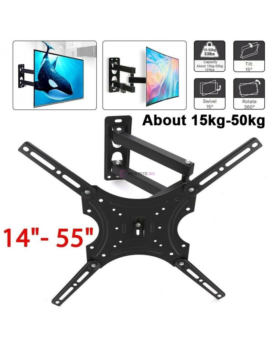 Стойка за телевизор на стена с подвижно дълго рамо 14 до 55 инча