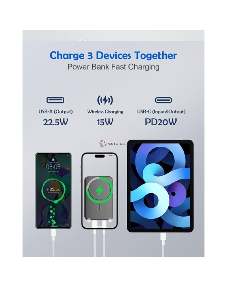 Външна батерия 5000 mAh 22.5W безжична PowerBank